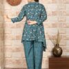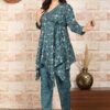 Indulge in the allure of our “Teal Temptation” Co-ord Set. Crafted from Silky Cotton Fabric, this ensemble offers a luxurious and comfortable feel. The Multicolor Discharge Print pattern adds a touch of vibrancy, perfect for any occasion. Designed with a stylish Angrakha neckline and 3/4th sleeves, this set creates a graceful and contemporary look.