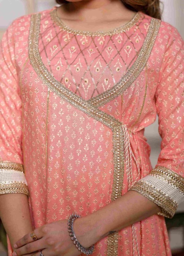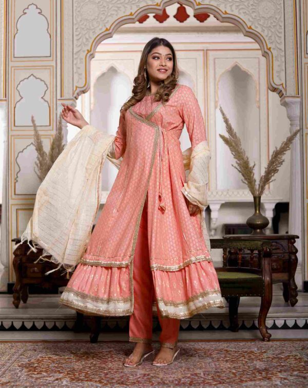 Made in Rayon Slub fabric giving silky look in this attractive Mustard color ready-to-wear Angrakha Set embellised with Cotton Net exclusive Lace work. The fitting and the cuts of of this garment are flexible for every body type and will look elegant on you. Crafted from Pure Rayon Slub fabric, it is light in weight and will be soft against your skin. Its unique design and beautiful color will fetch a lot of second glances as you club it with Gold-colored pumps and flashy accessories. It is capable of making you look gorgeous. Wear it and put your step into the world of fashion. It is show stopper product in functions and festival gatherings.