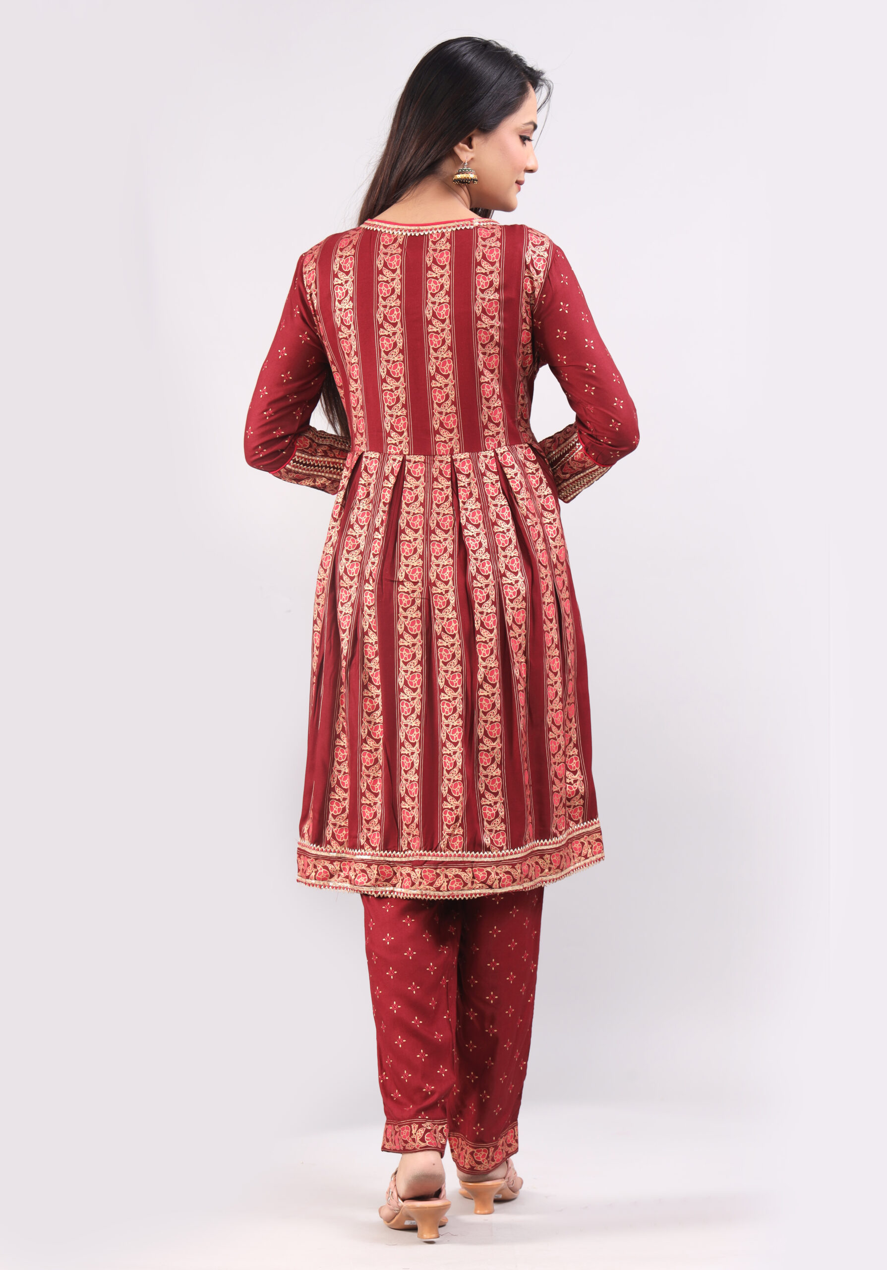 • Fit Type: Regular: Fabric: Rayon; Kurta Length: Calf Long.
